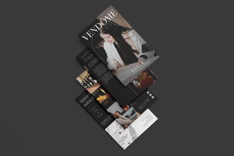 École Vendôme voulait se démarquer dans un secteur saturé d'institutions de luxe traditionnelles. Leur différence ? Une approche démocratique du luxe français et des programmes uniques. Mais cette singularité restait invisible. Comment penser une identité de marque forte qui reflète à la fois l'élégance de leurs formations tout en communiquant leur ouverture ?